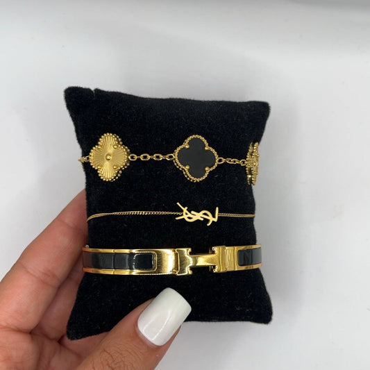 2-Piece Clover Bracelet Set - Black/White